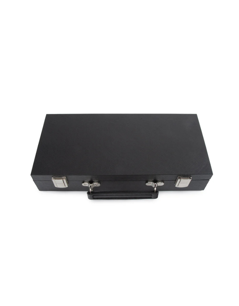 The Mini Travel Mahjong Set is an elegant companion for travel, adventures, or stylish game nights at home. Housed in a refined vegan saffiano case with a convenient handle, it slips effortlessly into your suitcase, backpack, or handbag. Despite its compact design, this set offers a complete collection: 166 premium 20mm tiles arranged on four clear acrylic trays, including all suits and special tiles, plus four detachable acrylic pushers and stands, three large dice, 100 money chips, and a wind indicator. Thoughtfully designed instructions ensure both beginners and seasoned players can enjoy the game.