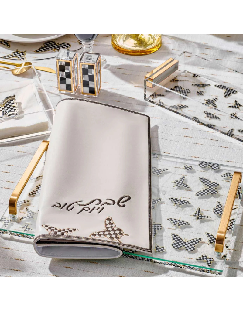 This magnificent Leather Challah Cover will make a striking addition to your Shabbos table. Unique design looks gorgeous when laid on top of Challahs. Features white leather with a onyx butterfly design. Premium quality & feel! Both practical and beautiful, this Challah cover would make a great gift.