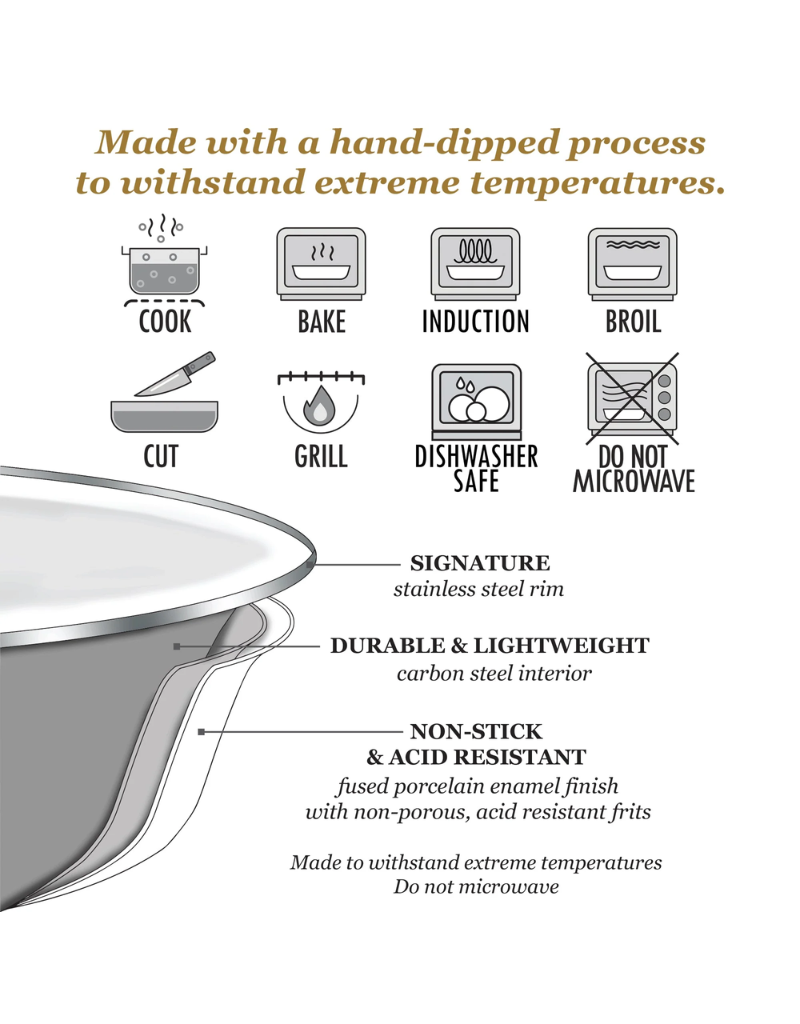 Elevate your culinary experience with the Taupe Swirl Enamelware Large Sauté Pan. Featuring a sophisticated taupe swirl design and a durable enamel surface, this 5-quart pan ensures even heat distribution for perfectly cooked dishes. Its tempered glass lid allows for easy monitoring, while its oven and stovetop safety adds versatility. Finished with non-toxic materials and dishwasher-safe convenience, this pan combines elegance and practicality for effortlessly stylish cooking.