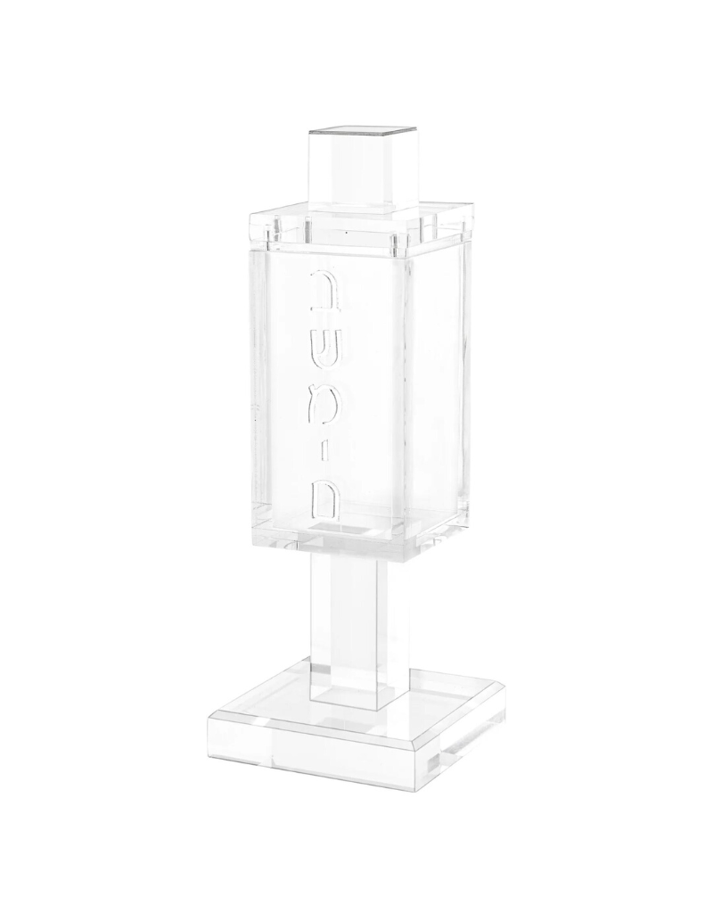 Standing tall, in a gorgeous Lucite jar, this Besamim holder is the perfect addition to your Havdalah display. Complete the look with one of our gorgeous Havdalah Candles, matches and an acrylic tray!