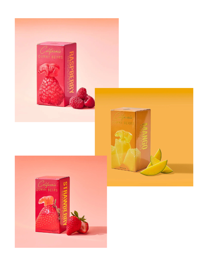 Indulge in the sweetness of real fruit with our luxurious California Gummy Bears. Crafted from handpicked strawberries, ripe raspberries, and fresh mangos, these gummy bears will delight your taste buds with their juiciness and natural flavor. Experience the joy of picking your own fruit all year round.