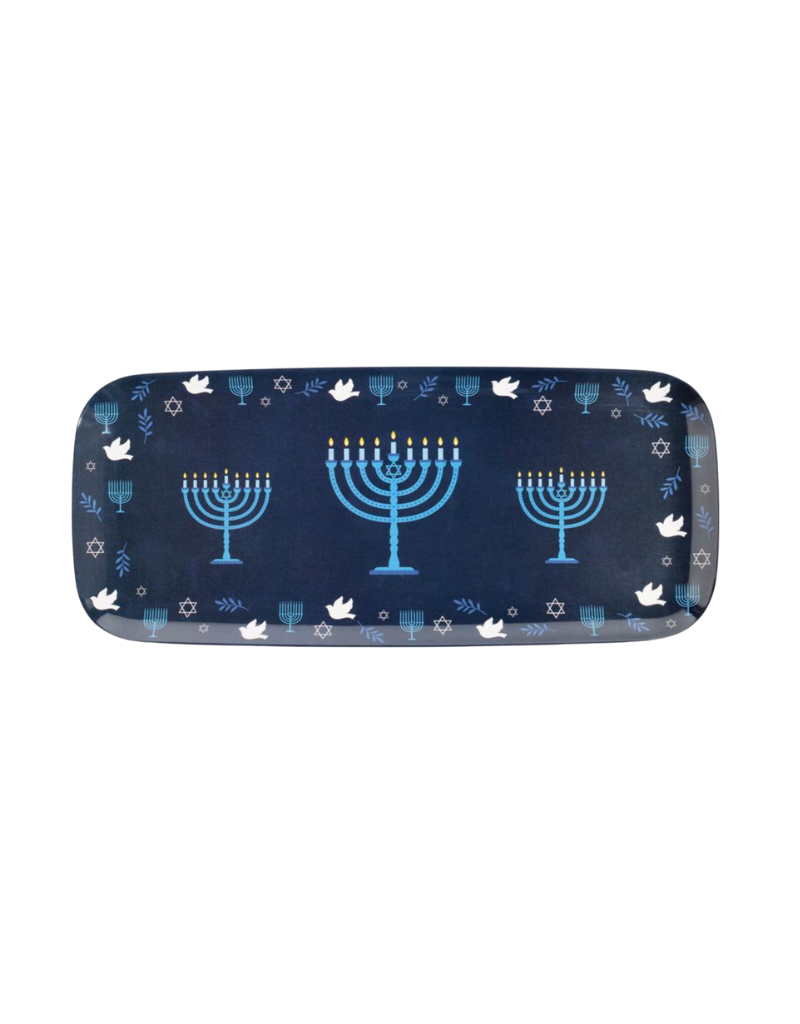 Celebrate Chanukah in style with this festive melamine tray! Perfect for serving up latkes and donuts at your family party. Don't settle for boring dishes, add some fun to your holiday!