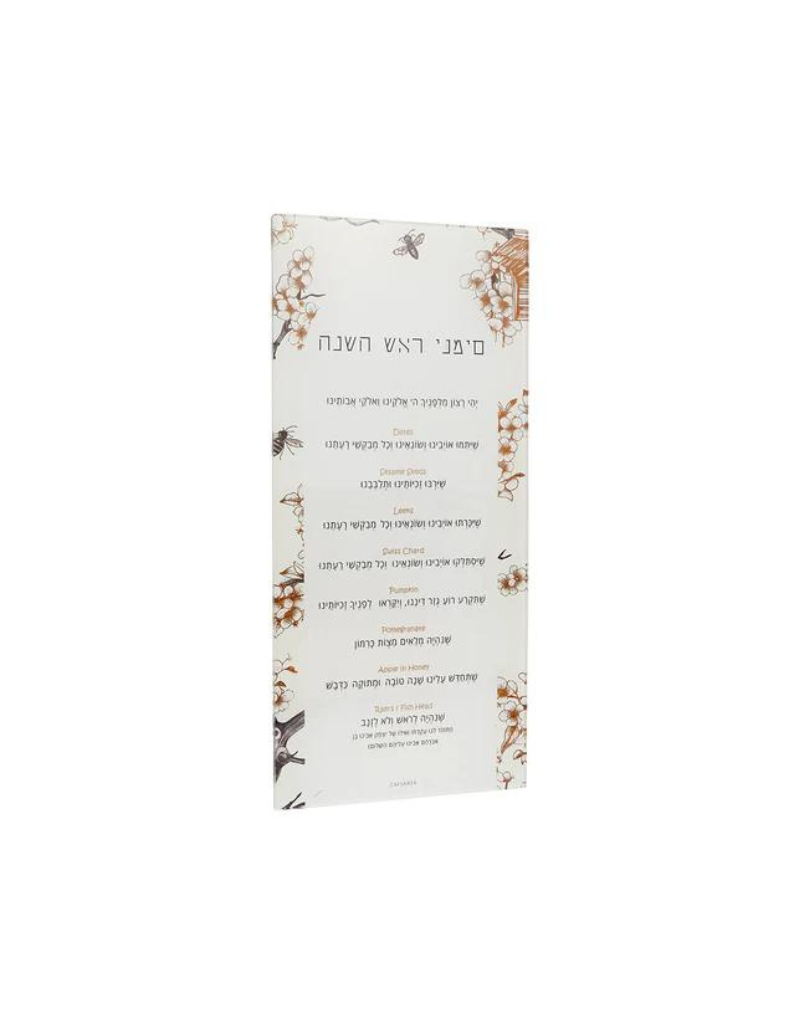 This lucite simanim display with elegant toile design is a true speciality! Stands on a clear lucite base adding elegance to this already magnificent product.