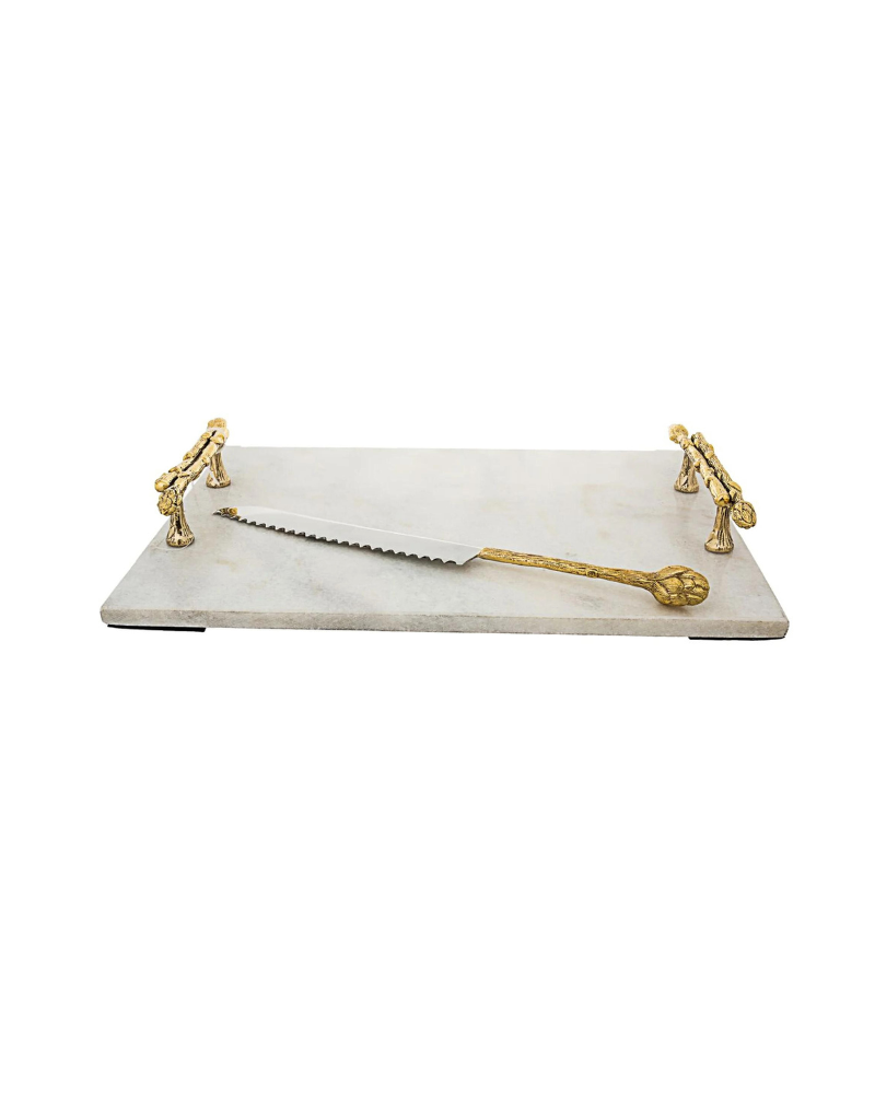 Marble Challah Tray with Gold Handles