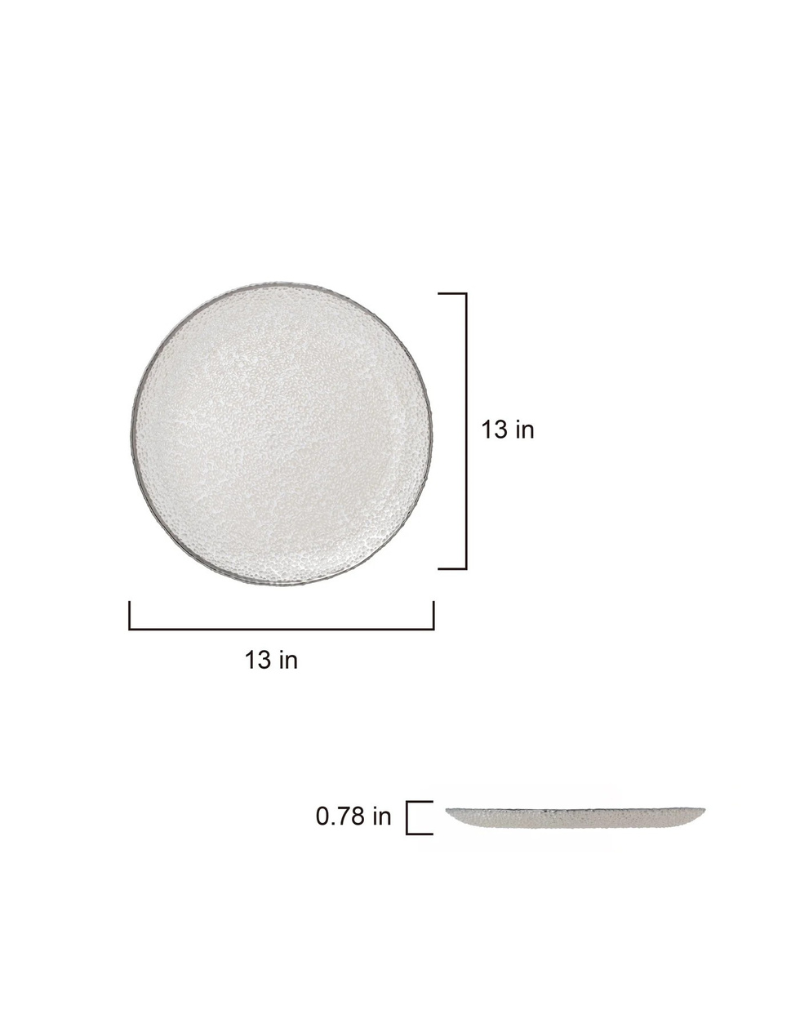 Brighten your table with this Glass Charger featuring a shimmering metallic painted finish that adds a sophisticated yet playful touch. Its lustrous surface catches the light beautifully, creating an inviting and lively atmosphere. Perfect for elevating any dining experience, this charger combines elegant design with a hint of fun to make every meal memorable.