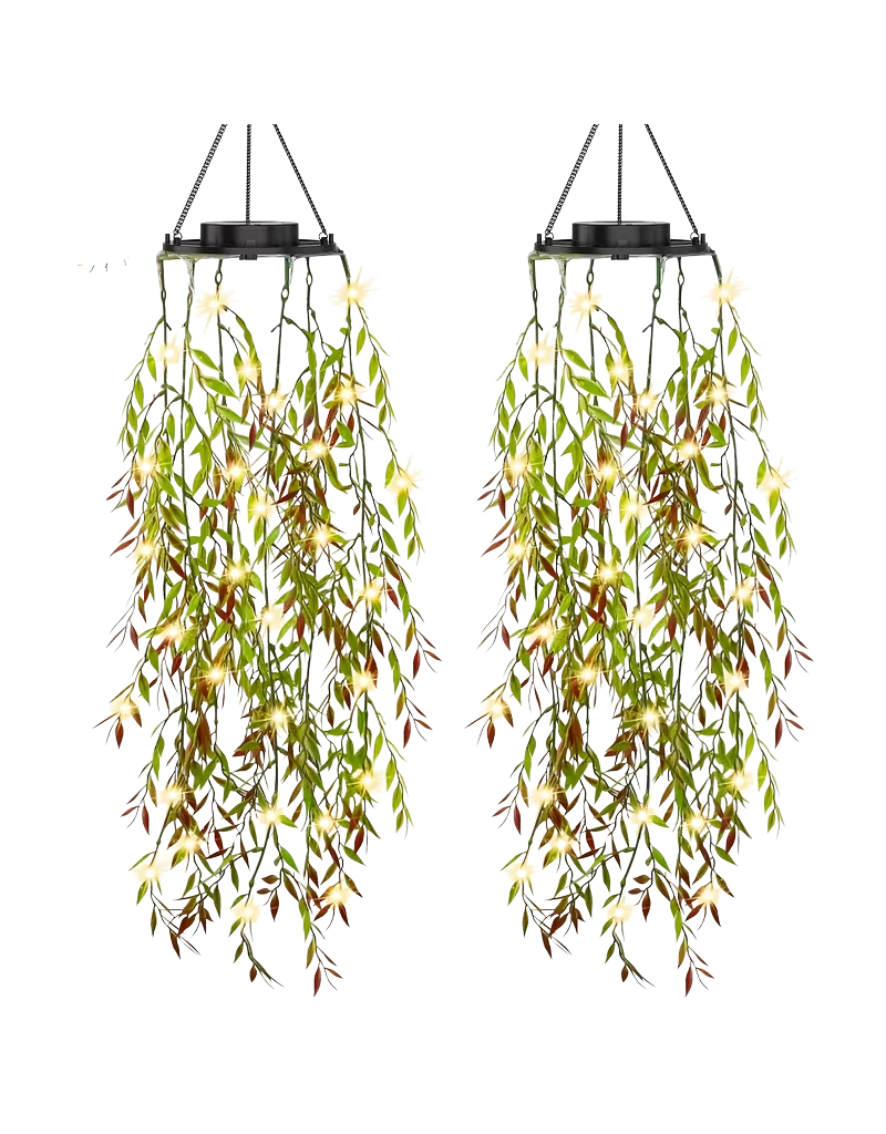 Bring a touch of greenery to your sukkah with this playful set of 2 Artificial Hanging Vine Willows. Each 3.6ft vine is adorned with lush, realistic ivy and willow leaves that stay vibrant all year round. Equipped with solar-powered LED lights, these vines add a magical glow as the sun sets, perfect for creating a cozy, festive atmosphere indoors or outdoors. Easy to hang and maintain, they make your space feel alive without any fuss.