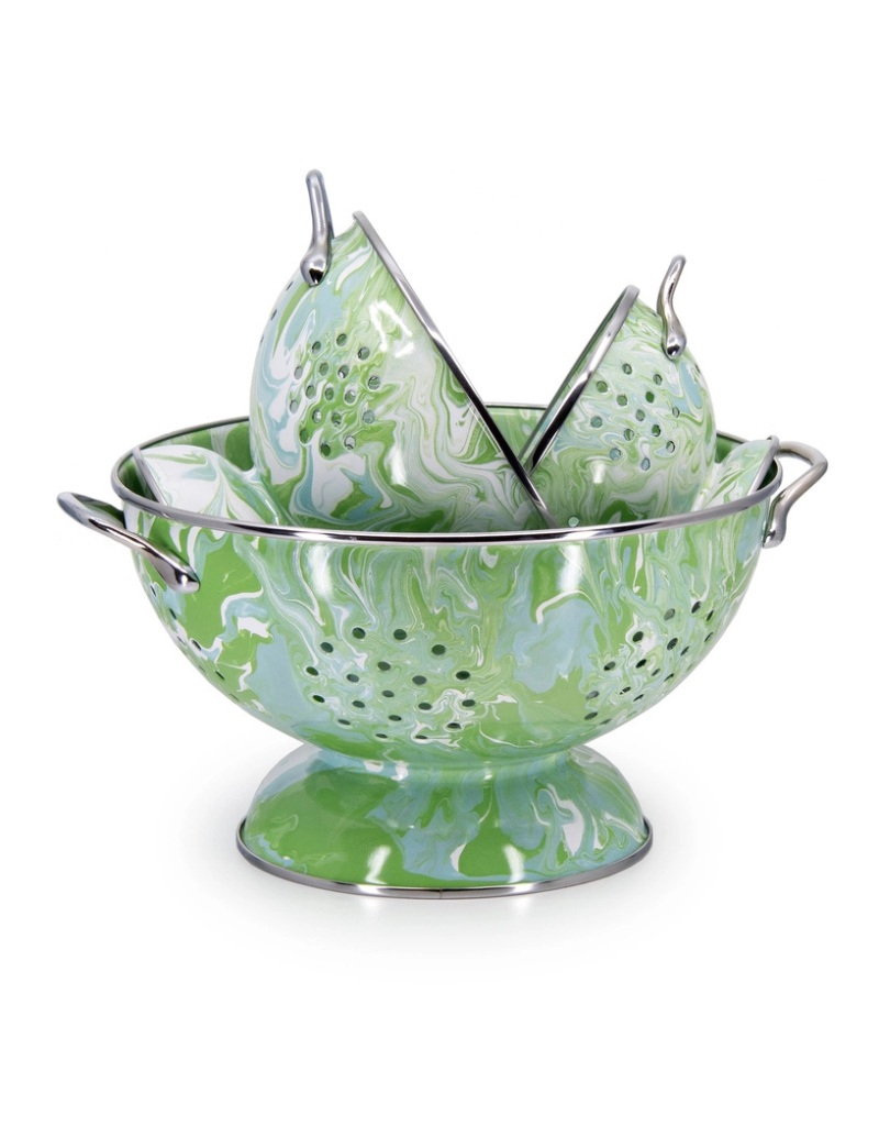 Introducing our captivating Modern Monet Enamelware Collection in a stunning green and sea-glass pattern – a harmonious fusion of style and functionality that brings a touch of coastal elegance to your dining experience. From casual brunches to formal dinners, this collection effortlessly adapts to any occasion. The timeless marbled pattern and soothing palette make it a versatile addition to any kitchen, seamlessly integrating into various decor styles.