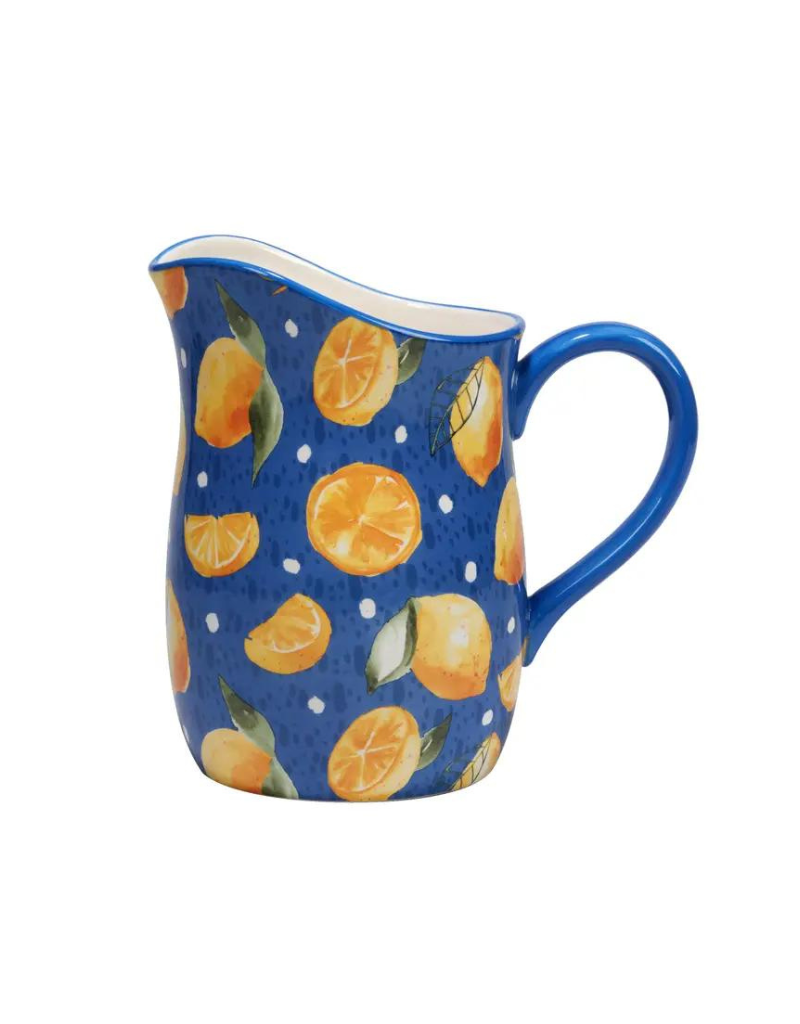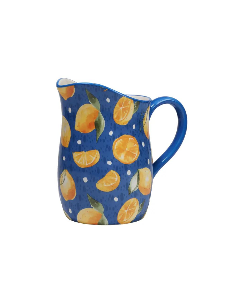 Add a pop of color to your table with this exquisite pitcher, serving both as a functional beverage holder and a striking centerpiece. The spirited design and vibrant hues are sure to captivate and elevate any table setting. Whether it's a lively gathering or a tranquil moment on the patio, the Lemonade Pitcher is an essential addition for any occasion.
