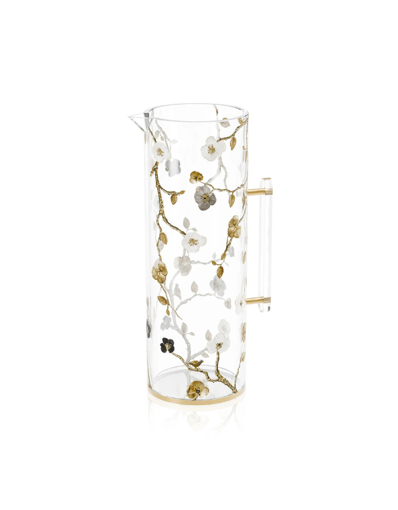 Bring effortless elegance to your table with the Ornate Garden Pitcher. Crafted from crystal-clear lucite with a gold base and sleek clear handle with gold fittings, the stunning floral and branch design wrapping around the exterior makes this pitcher as beautiful as it is functional. Perfect for Shabbos, Yom Tov, or everyday use.