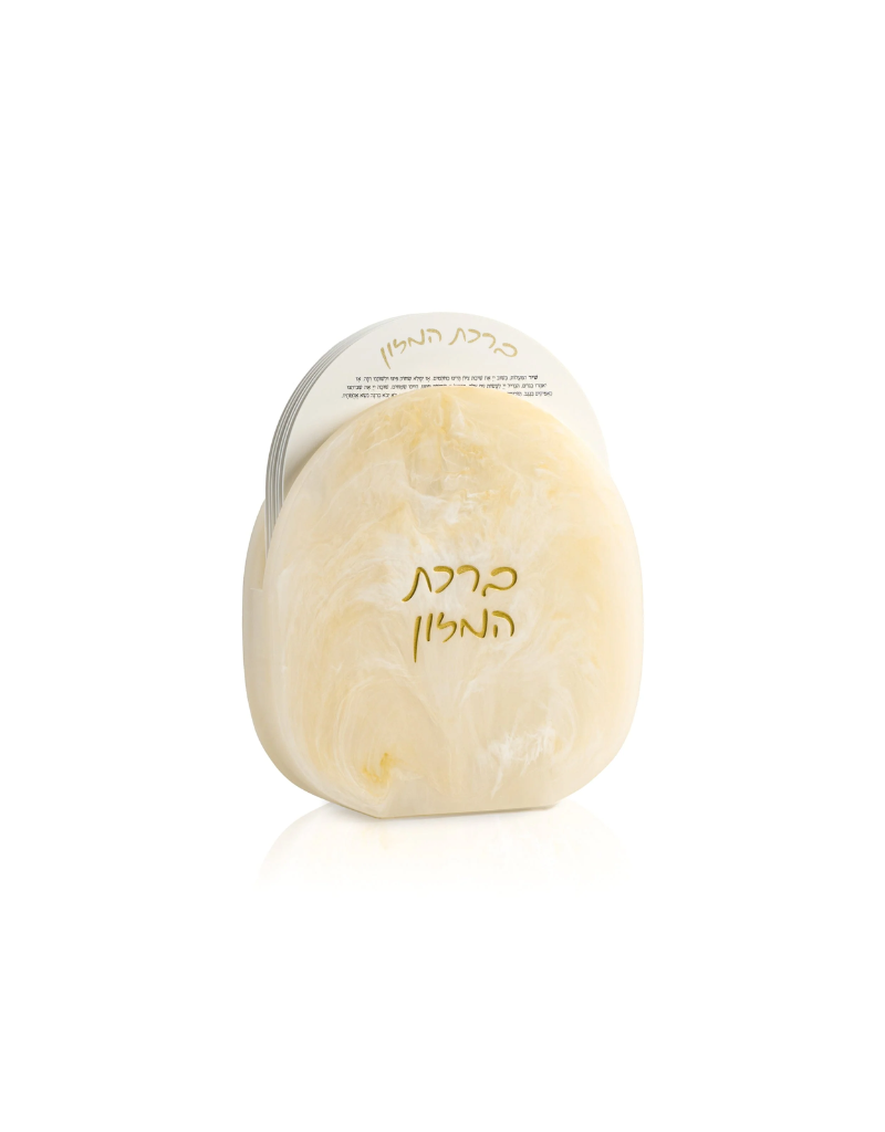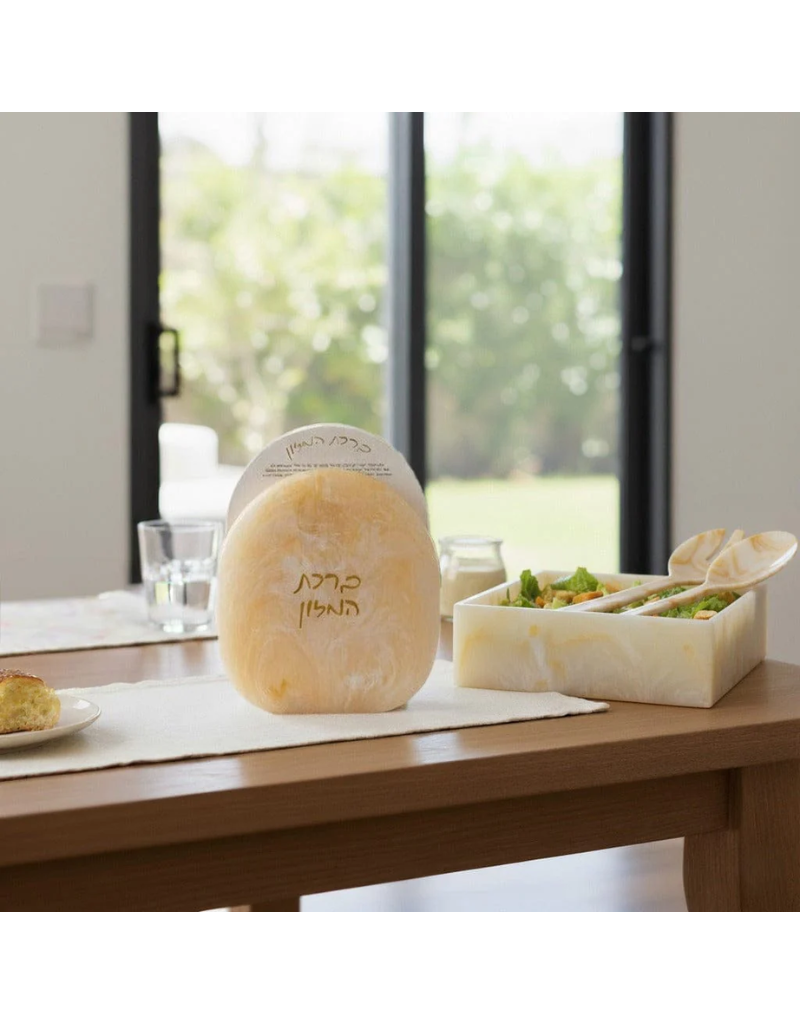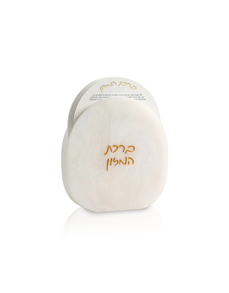 Elevate your table with our modern Resin Bencher Set, featuring Birchat Hamazon lettering on the front and White acrylic cards with Birchat Hamazon (ברכת המזון). Handcrafted with durable resin, this sleek oval set combines functionality with contemporary elegance. Easy to read, simple to clean, and perfect for both everyday use and special occasions, it’s a must-have for stylish home décor and elegant entertaining.